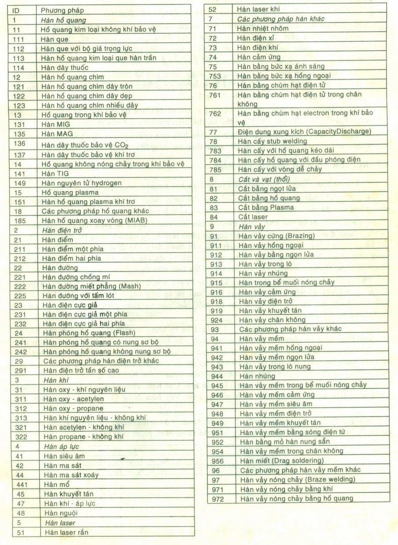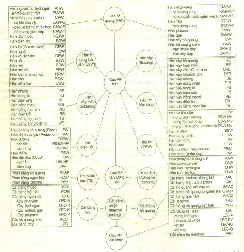 Để phân loại tổng quát các phương pháp hàn, ta có thể xét bảng phân loại công bố bởi AWS (American Welding Associate) dưới đây